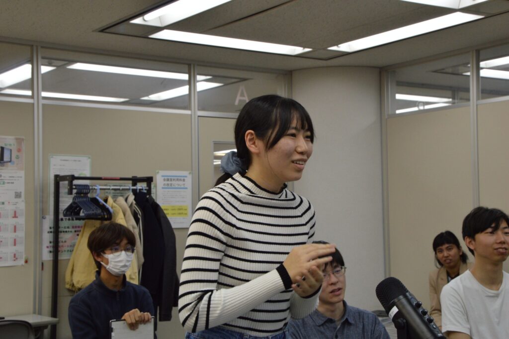 テーマトーク前半は、「学生生活・仕事」について、発表を行いました。